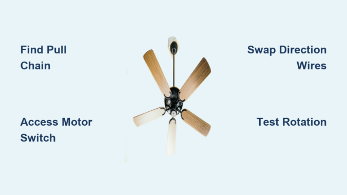 Remote-controlled fans offer the easiest adjustment—simply press and hold the direction button (usually marked with a circular arrow) while the fan is running. You’ll typically hear a distinct click from the motor housing within 3-5 seconds indicating the direction has changed. Some remotes require the fan to be off during direction changes, so consult your manual if the first attempt doesn’t work. The entire process takes less than 30 seconds once you know which button to press.