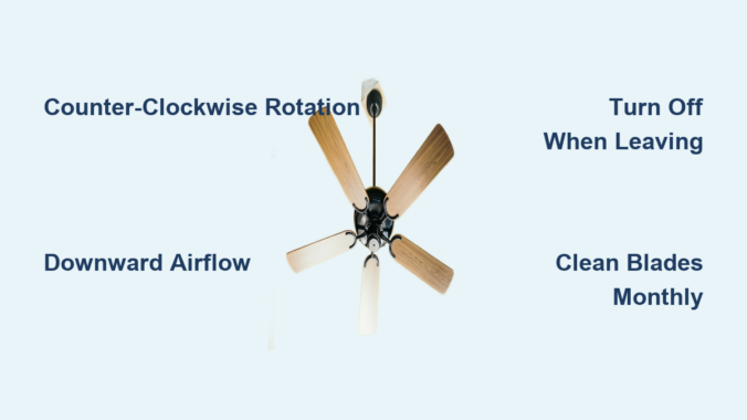 If your fan runs clockwise during summer—a common mistake—you’re actually working against yourself. Clockwise rotation pulls air upward toward the ceiling, drawing the cooler air (which naturally settles near the floor where you live) up and away from your breathing zone. This creates a vacuum effect that pulls warm air down from the ceiling, making your room feel stuffier and forcing your air conditioning to work harder to maintain temperature. It’s like having your fan actively fight against your cooling system.
